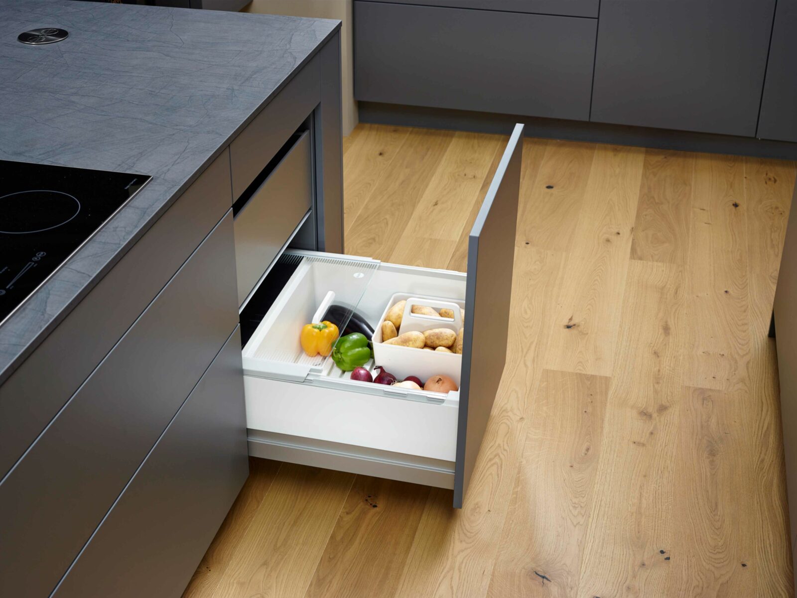 4. Îlot central : Intégrez les Pantry-Box dans l’îlot central pour un accès rapide et une organisation esthétique.