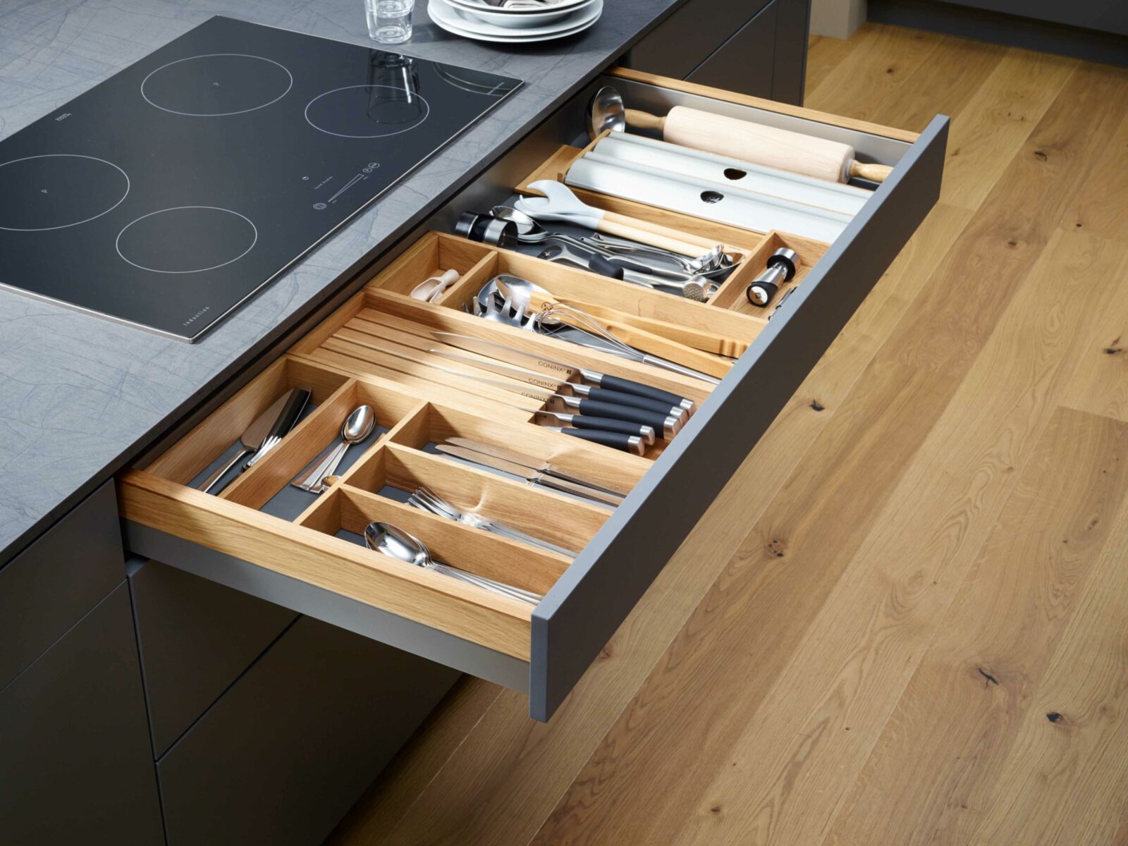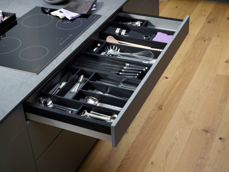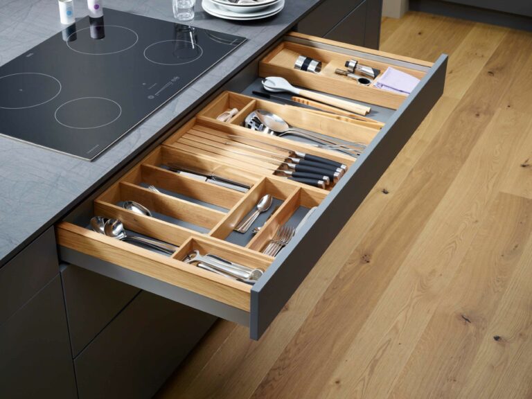3. Complémentarité avec les tiroirs et placards : Assurez-vous que le range couvert s’intègre harmonieusement avec vos tiroirs et placards existants. Des options modulaires peuvent être ajustées pour convenir à différentes tailles de tiroirs.