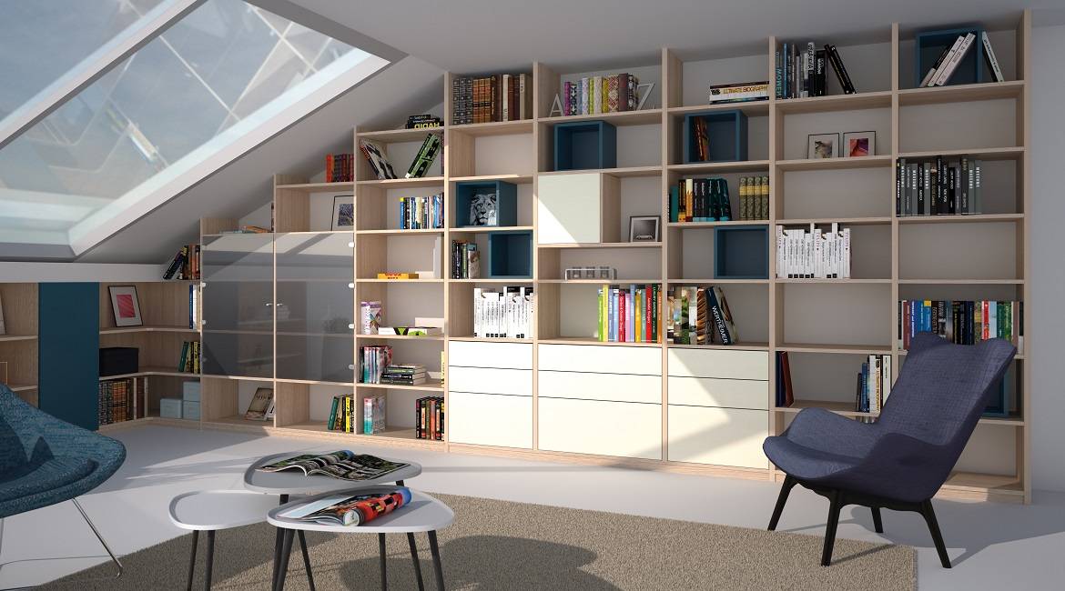 Plus qu’un spécialiste de l’aménagement sur mesure, CUISILIGNE s’impose comme une référence dans le domaine du conseil et de l’installation de mobilier pour votre intérieur, en prenant en compte toutes vos contraintes.De la cuisine équipée, en passant par la salle de bain et le dressing, notre expertise saura répondre à vos attentes, comme ici avec cette bibliothèque réalisée avec notre gamme de rangement sur mesure.Portes vitrées à demie hauteur, installation en sous pente, mélange de couleurs et tiroirs sans poignée, le tout est au rendez-vous pour vous prouver notre professionnalisme.N’hésitez pas à nous solliciter pour toute étude personnalisée : Les devis sont gratuits ! Nos tarifs de pose ainsi que le détail des fournitures vous seront remis pour un tarif clair à un prix net pour vous garantir le meilleur rapport qualité prix.Contactez nous au 05.57.99.91.30 pour tout projet de rangement sur mesure sur Bordeaux, Libourne et St André de Cubzac.